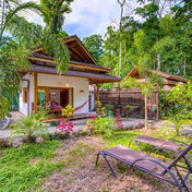 Situated on an exclusive location just a short walk to beautiful Cocles beach, this property offers a diverse range of living spaces perfectly designed for maximum comfort and enjoyment. The main house boasts a spacious 80 square meters (860 sq. ft.) of living area, providing ample room for a growing family or vacationing group. With high quality finishes and lofty ceilings, this property exudes elegance and sophistication.